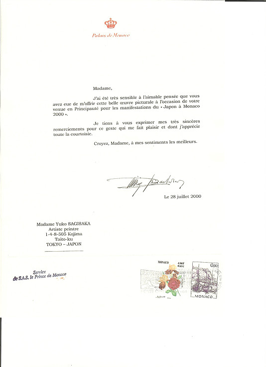 モナコ王室 元国王レーニエ3世大公より感謝状