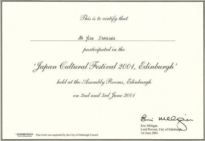 エディンバラフェスティバル感謝状(エディンバラ市)