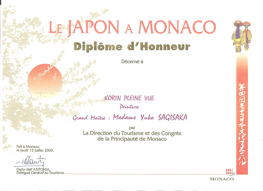 モナコ・ジャパンフェスティバル感謝状(モナコ公国)