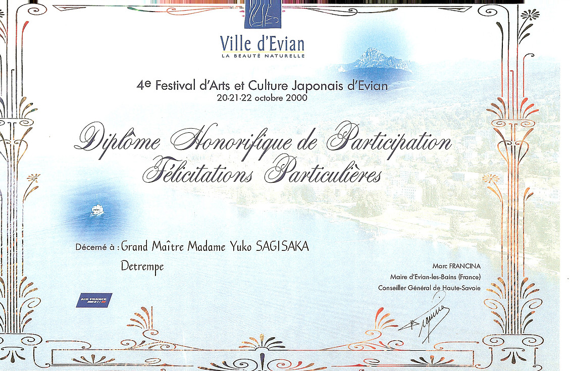 エビアン・ジャパンフェスティバル感謝状・メダル(フランス・エビアン市)